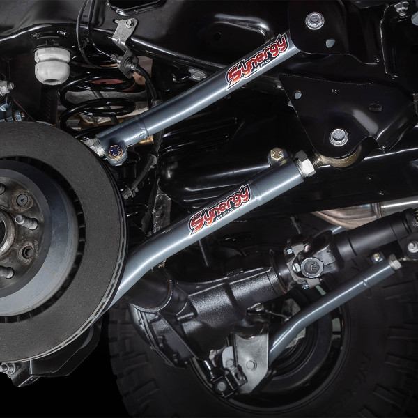 Synergy Jeep JL / JLU Adjustable Control Arm Kit includes all 8 adjustable control arms and is a Heavy Duty upgrade for the stock fixed length JL control arms. They are adjustable to allow for caster correction, pinion adjustment, and re-centering of the axle housings for oversize tires and increased ride heights.