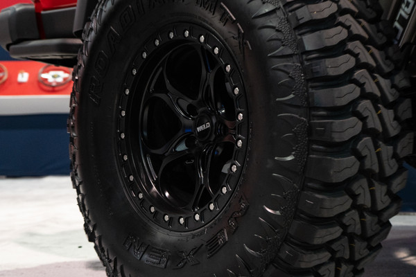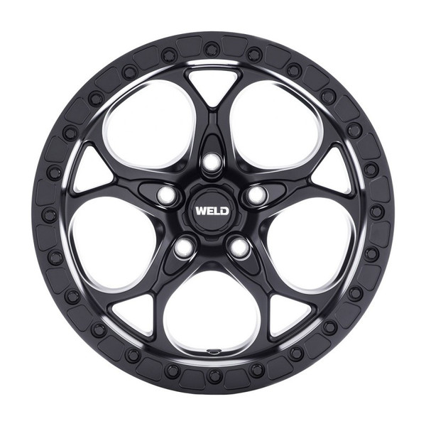 The Ledge Beadlock is made for Off-Road Wheeling. Its rotary-formed construction results in an enviable combination of increased strength and reduced weight, and its 6061 forged aluminum beadlock ring ensures top performance under extreme conditions. The Ledge Beadlock features an aggressively curved split five-spoke design currently offered in 17-inch sizes with a 5-lug Jeep bolt pattern. We finish it in smooth satin black with Zn-Ni plated beadlock hardware. Its center cap is gloss black with a chrome WELD logo that stands out even behind dirt and mud.