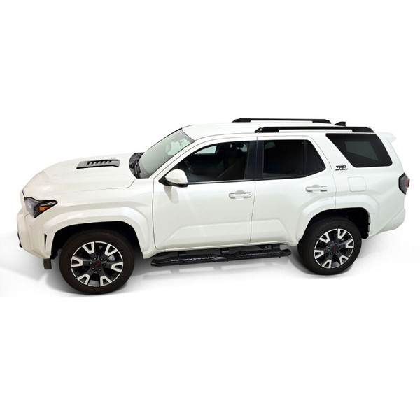 Designed by Westin, the Pro Traxx 4 Oval Nerf Step Bars provide a secure, wide step area ideal for Toyota 4Runner models from 2025-2026. Constructed from durable 4-inch, 5-inch, or 6-inch oval tubing, these step bars feature injection-molded polymer step pads that measure 4 inches wide, offering a confident footing for passengers and drivers alike. The semi-gloss black finish enhances vehicle aesthetics while providing corrosion resistance for long-lasting performance. These step bars are engineered for easy bolt-on installation, with all necessary hardware included, and are compatible with most 4Runner applications, making them a practical upgrade for off-road and daily driving needs.Westin's design includes 30 factory-style bends at each fully-welded dome end, creating a seamless appearance without exposed bolt heads or end-caps for a sleek, integrated look. The aggressive saddle-mounted step pad not only improves traction but also helps protect the vehicle's rocker panels from potential damage during off-road adventures or urban use. Designed and engineered in San Dimas, California, these Nerf Step Bars reflect Westin’s commitment to quality and durability, making them a reliable accessory for your Toyota 4Runner. Whether you're enhancing accessibility or protecting your vehicle, these step bars deliver a combination of style and functionality that meets the demands of modern SUVs.