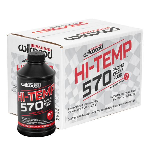 The Wilwood 570 Brake Fluid is a high-performance, DOT 3 compatible fluid designed for automotive braking systems that demand reliable and consistent performance. Each pack includes six 12-ounce bottles, providing ample supply for multiple brake system flushes or ongoing maintenance. This brake fluid is formulated to optimize braking response, reduce fade, and maintain effective lubrication under high-temperature conditions, ensuring your vehicle*s braking performance remains consistent and dependable. Ideal for racing, performance upgrades, or regular maintenance, it meets stringent quality standards to support optimal brake system operation.